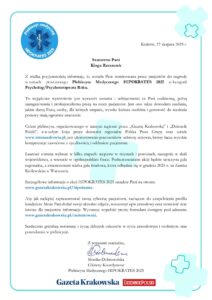 Z ogromną przyjemnością pragniemy pogratulować naszej koleżance Kindze Rzeszutek, będącej częścią naszego zespołu nominacji do nagrody w prestiżowym Plebiscycie medycznym HERKULES 2025 w kategorii psycholog/psychoterapeuta.